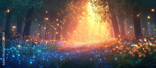 Obraz premium Ethereal fireflies dance and glow illuminating the ethereal dreamlike...