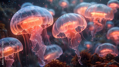 © panu101, Fototapeta premium Ethereal,Floating Jellyfish in an Underwater World of Mystical Serenity and Otherworldly Beauty