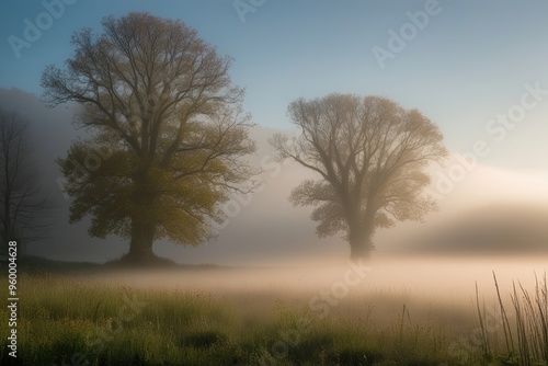 © Michael, Fototapeta premium Ethereal Fog Layers Over Nature with Luminosity and Graceful Atmosphere