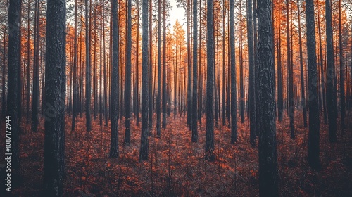 © Lonely, Obraz premium Ethereal Forest Landscape with Sunlight Filtering Through the Lush Foliage