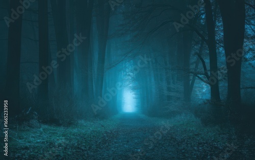 © BORN, Fototapeta premium Ethereal forest path leading to glowing light