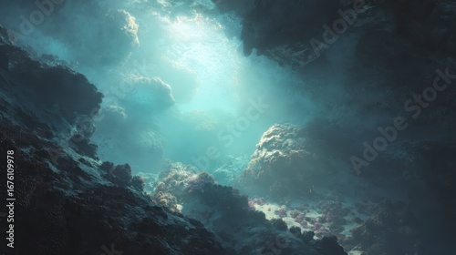 © Kitta Studio, Naklejka premium Ethereal Glow of Ocean Depths Illuminated by Soft Light