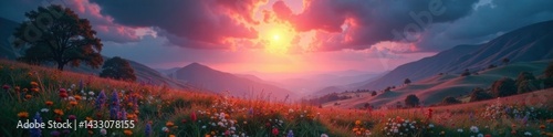 Fototapeta premium Ethereal glowing halo surrounds a serene landscape, halo, ethereal