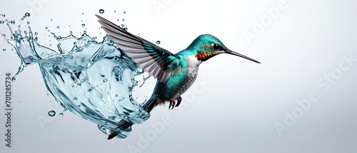Obraz premium Ethereal Hummingbird Gliding Through a Splash of Crystal Blue Water