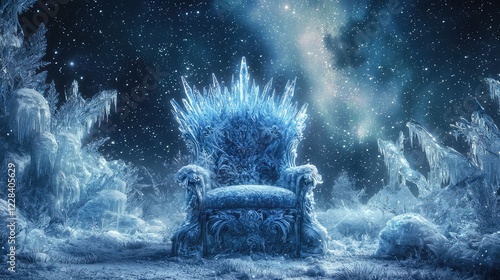 © Kitta Studio, Fototapeta premium Ethereal Ice Throne Surrounded by Sparkling Frozen Landscape at Night