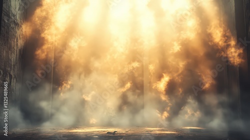 Fototapeta premium Ethereal illumination casts down on a smoky stage-like scene with texture