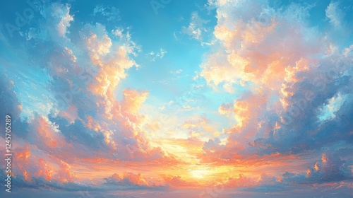 © Margarita, Obraz premium Ethereal Impressionist Landscape with Blue Sky and Wispy Clouds at Golden Hour