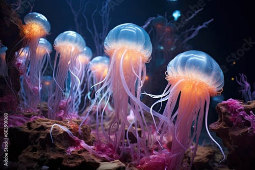 © Balaraw, Naklejka premium Ethereal jellyfish underwater scene
