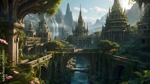 © paul, Obraz premium Ethereal Keep Adventure: Generative AI