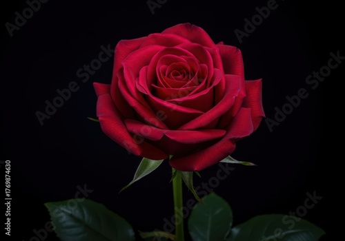 Naklejka premium Ethereal lighting illuminates a solitary, perfect deep crimson rose,...