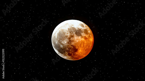© Raden Mas Roy, Fototapeta premium Ethereal lunar eclipse illuminating the cosmos with fiery and silver tones