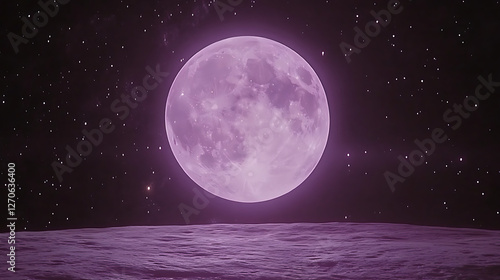 © Big9869, Fototapeta premium Ethereal Lunar Landscape A Full Pink Moon Illuminated Against Starry Skies Celestial Vista