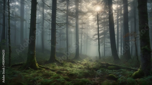 © grafixcareer, Obraz premium Ethereal mountain view with dense fog and peaceful natural scenery