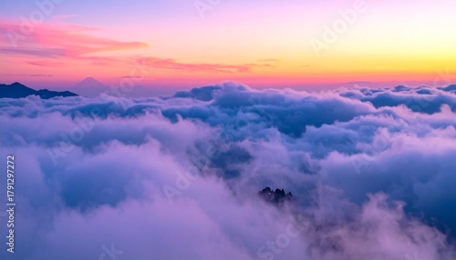 © Wenny, Obraz premium Ethereal mountain vista sea of clouds