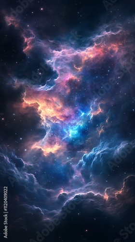 © LEMAT WORKS, Obraz premium Ethereal Nebula with Soft Blue and Fiery Tones - made with Generative AI