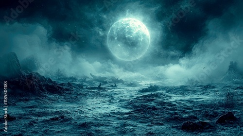 Fototapeta premium Ethereal Nightscape: A Mystical Lunar Landscape Under a Spellbinding Full Moon