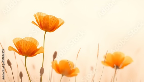© Mishkat Uddin Rahat, Obraz premium Ethereal Orange Flowers with Soft Background in Abstract Style