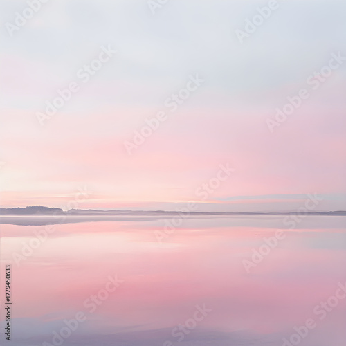 Fototapeta premium Ethereal Pink Horizon: Dreamy Skyscape Reflecting Pastel Clouds and Tranquil...