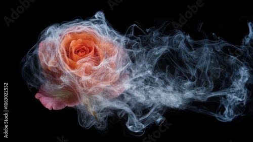 Obraz premium Ethereal Rose with Smoky Swirls on Black Background