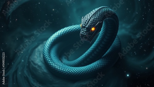 © Danial, Fototapeta premium ethereal serpent with obsidian scales in cosmic void
