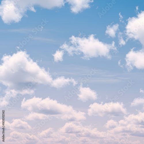 Fototapeta premium Ethereal skyscape featuring soft white cumulus clouds against a gentle blue...
