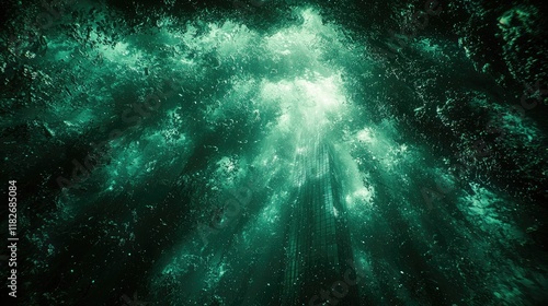 Fototapeta premium Ethereal Skyscraper Emerging From Green Depths