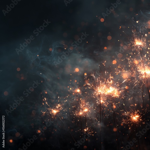 Fototapeta premium Ethereal Sparkling Fireworks Display with Glowing Lights and Smoke