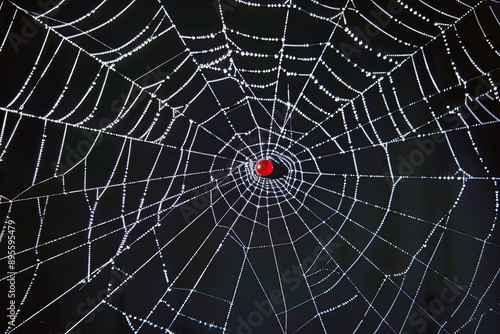 © CHAWA GEN, Fototapeta premium Ethereal Spider Web with Red Gemstone Eye on Black Background