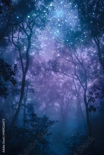 Fototapeta premium Ethereal Starlit Forest with Cosmic Glow, Generative AI