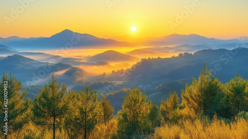 © LAB.Photo, Fototapeta premium Ethereal Sunrise Over Majestic Mountain Range - Abstract Artistic Interpretation