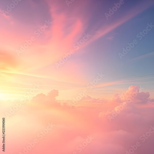 © Muhammad Sajid, Obraz premium Ethereal Sunset - Pastel Clouds & Golden Hour Glow in a Dreamy Sky
