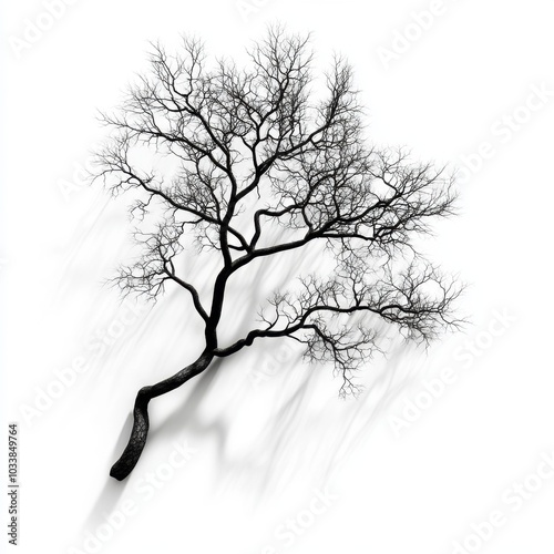 © Popimagi, Obraz premium Ethereal Tree Branches Shadow Blur - 3D Render on White Background