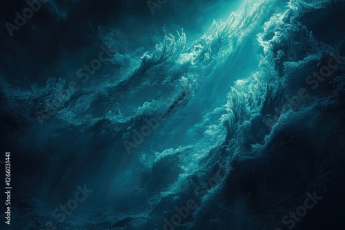 Fototapeta premium Ethereal underwater scene with vibrant teal hues, resembling otherworldly...