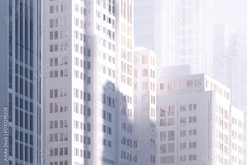 Naklejka premium Ethereal Urban Skyline with Soft Light and Architectural Detail.