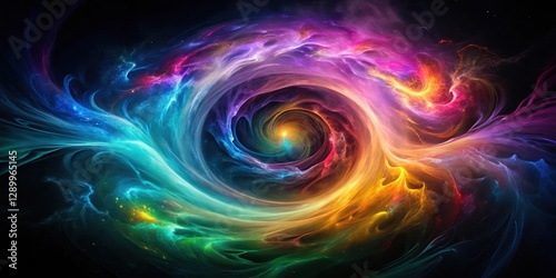 © Buakung, Fototapeta premium Ethereal vortex of iridescent hues dancing across a dark canvas, evoking an otherworldly aura , abstract glowing swirl colors black background, dark atmosphere