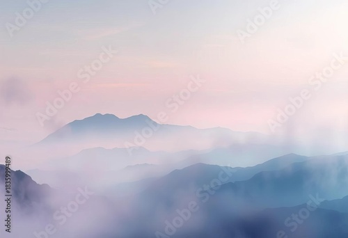 Fototapeta premium Ethereal washes of color evoke serene, dreamlike landscapes; subtle textures and gradients suggest distant mountains and misty skies, mountains, subtle