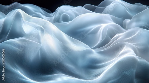 © SI3ee, Obraz premium Ethereal waves of fabric flow over a dark surface; soft light illuminates undulating shapes