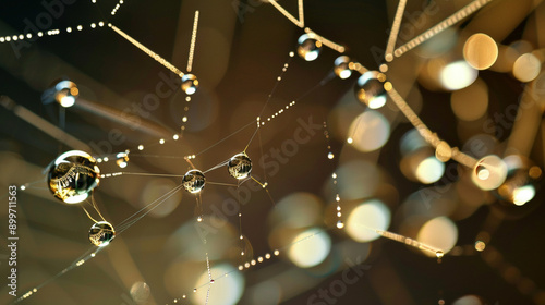 Obraz premium Ethereal Webs: Exploring the Interplay of Dewdrops and Spacetime