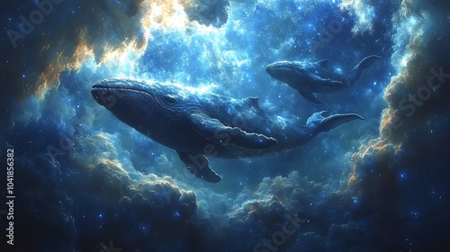 Obraz premium Ethereal Whales Floating Through Deep Space