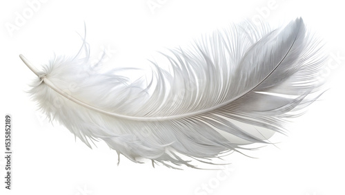 © rabbi, Obraz premium ethereal white feather floating on pure isolated on white background PNG , AI GENERATED