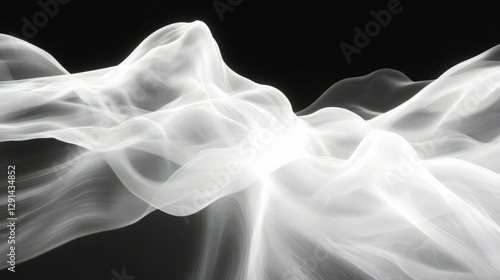 © annetdebar, Fototapeta premium Ethereal white light waves on black background for modern abstract design