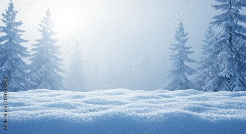 Naklejka premium Ethereal winter landscape featuring frosty pine trees and detailed...