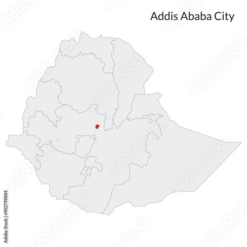 © Supatra, Fototapeta premium Ethiopia map. Map of Ethiopia with capital city Addis Ababa