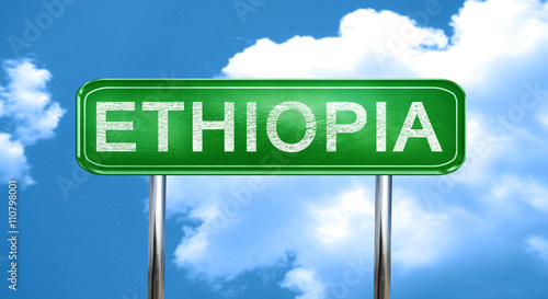 © Argus, Obraz premium Ethiopia vintage green road sign with highlights