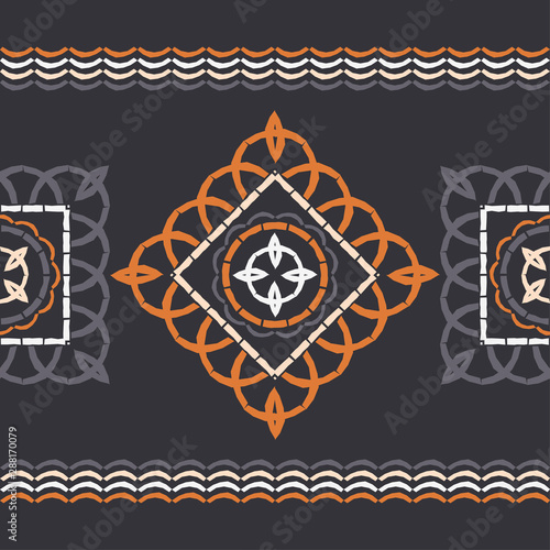 Fototapeta premium Ethnic boho seamless pattern. Lace. Embroidery on fabric. Patchwork texture. Weaving. Traditional ornament. Tribal pattern. Folk motif. Can be used for wallpaper, textile, wrapping, web.
