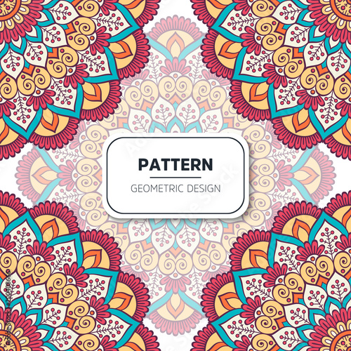 Fototapeta premium Ethnic floral seamless pattern with mandalas