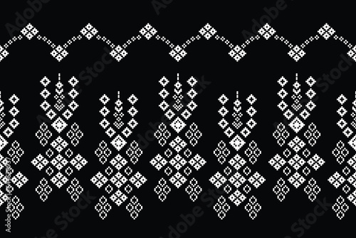 © FirstFreedom, Fototapeta premium Ethnic geometric fabric pattern Cross Stitch.Ikat embroidery Ethnic oriental Pixel pattern black background. Abstract,vector,illustration. Texture,clothing,frame,decoration,motifs,silk wallpaper.