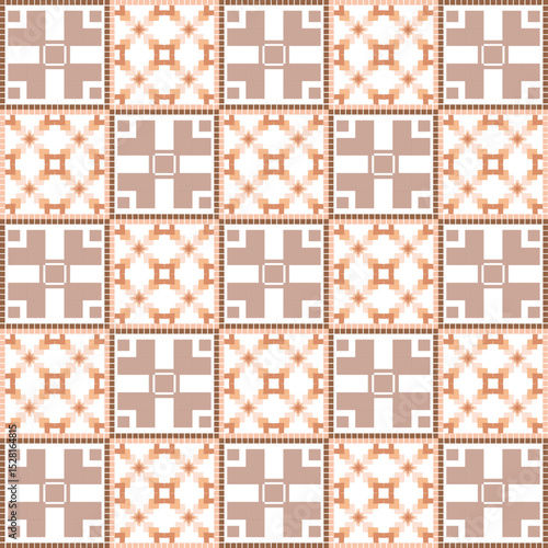 © Napat, Fototapeta premium Ethnic geometric pixel ornament tribal fabric patterns, embroidery design