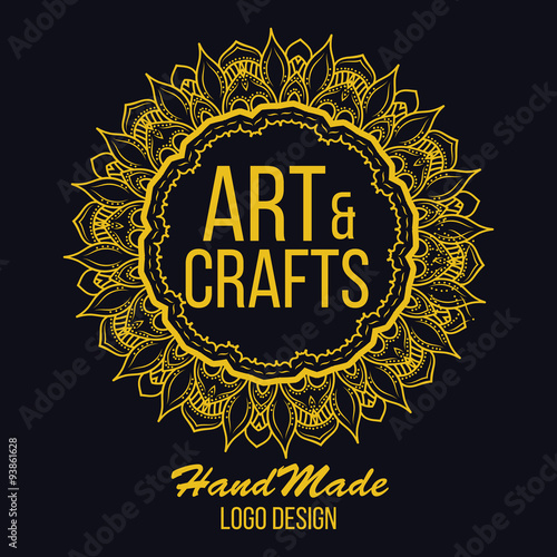 Fototapeta premium Ethnic logotype decorative element. Hand drawn elegant lineart logo design. Vector illustration. Islam, Arabic, Indian, ottoman motifs.