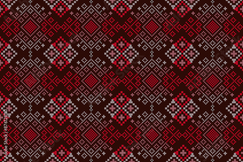 Obraz premium Ethnic pattern seamless art vector Fabric Morocco, geometric, Pixel pattern...